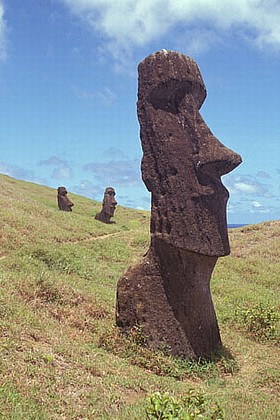 Rapa Nui é famosa por suas enormes estátuas de pedra chamada de MOAI. São mais de 887 estátuas espalhadas pela Ilha de Páscoa (Rapa Nui), medem entre 4,5 a 6 metros de comprimento e pesam entre 1 e 27 toneladas
